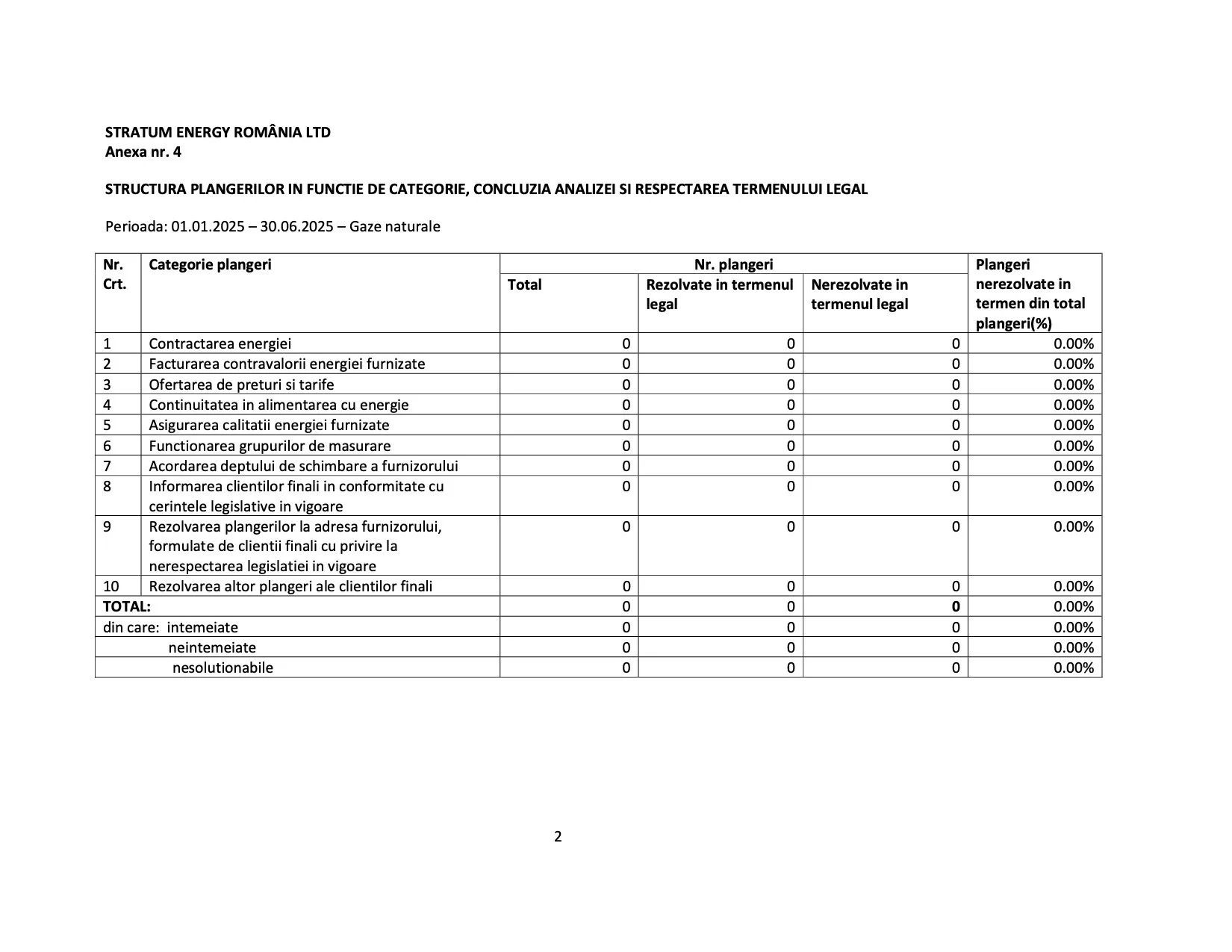 Raportare solutionare plangeri furnizare gaze naturale SEM II 2025